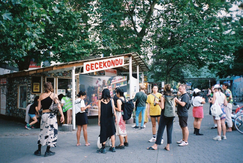 Spätis verkaufen im Kiez, weil Leute nicht so weit gehen wollen, z.B. wenn es dunkel ist, oder wenn Frauen nicht so weit gehen möchten oder Kinder, weil es im Dunkeln nicht so sicher scheint.